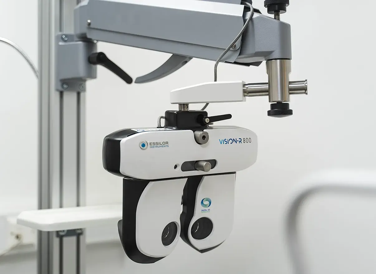 Els vidres del nostre foròpter són de cristall líquid, això fa que no noteu canvis bruscos de lents, millorant l’experiència i podent oferir una major precisió en l’examen visual.